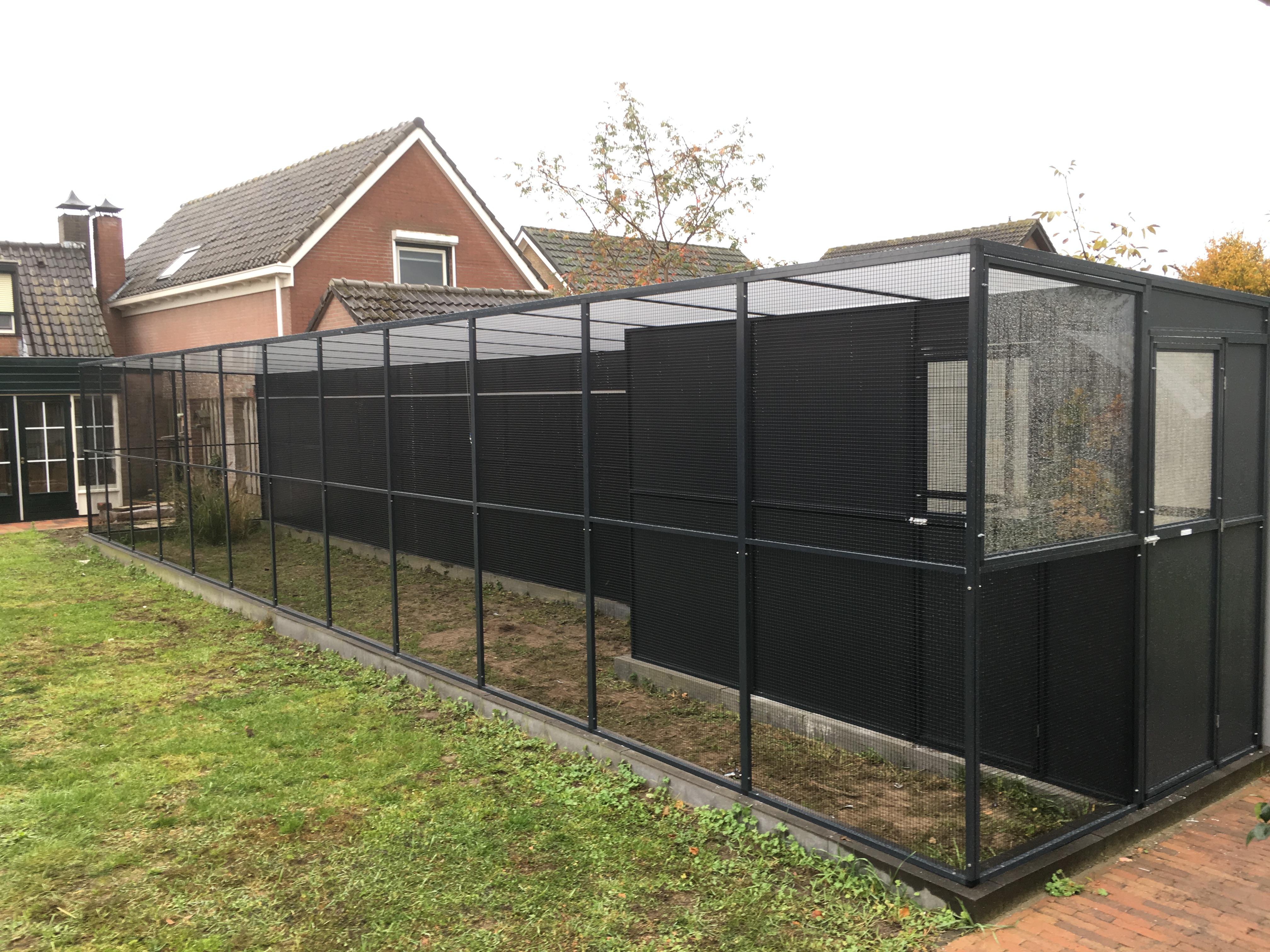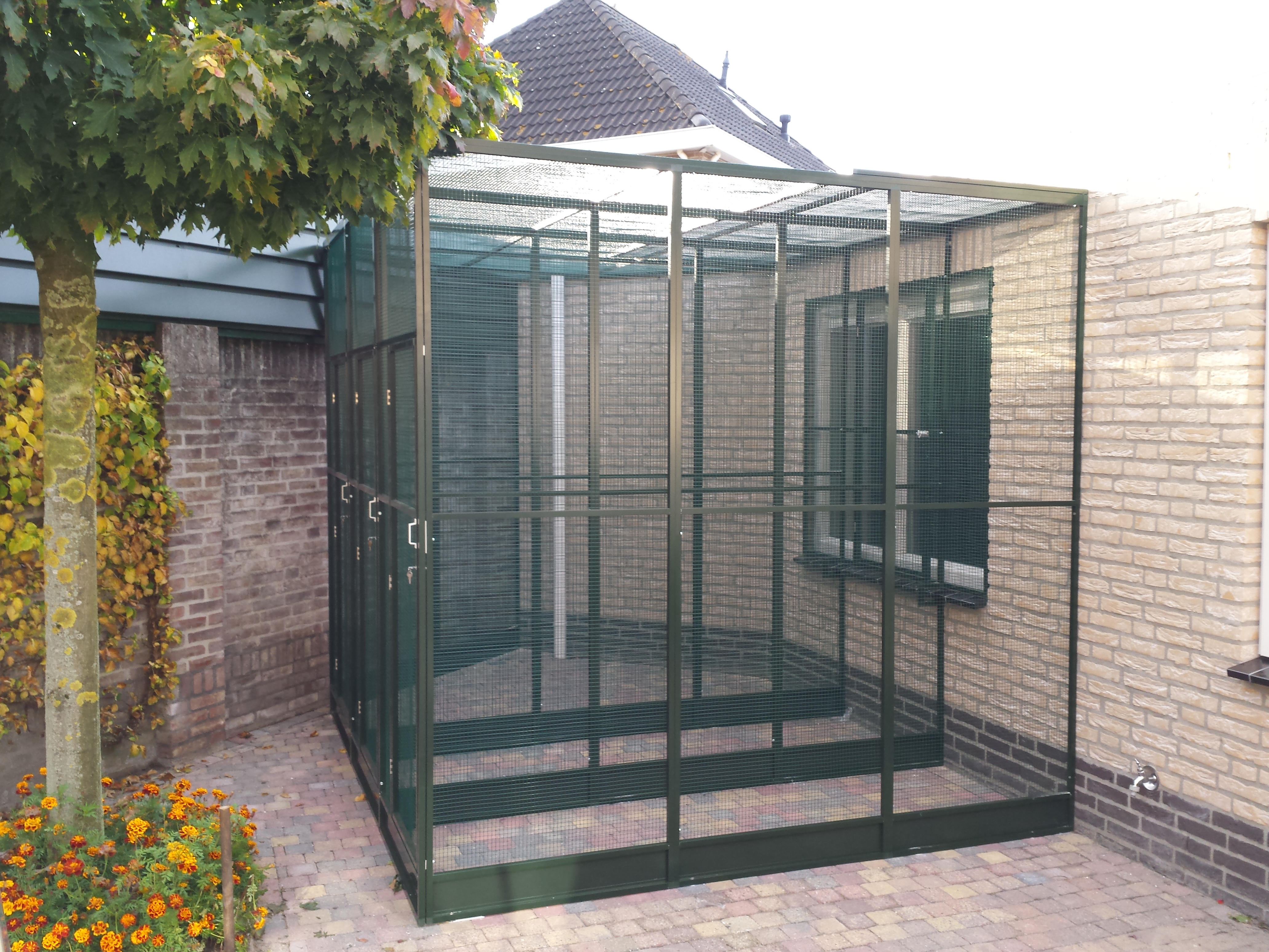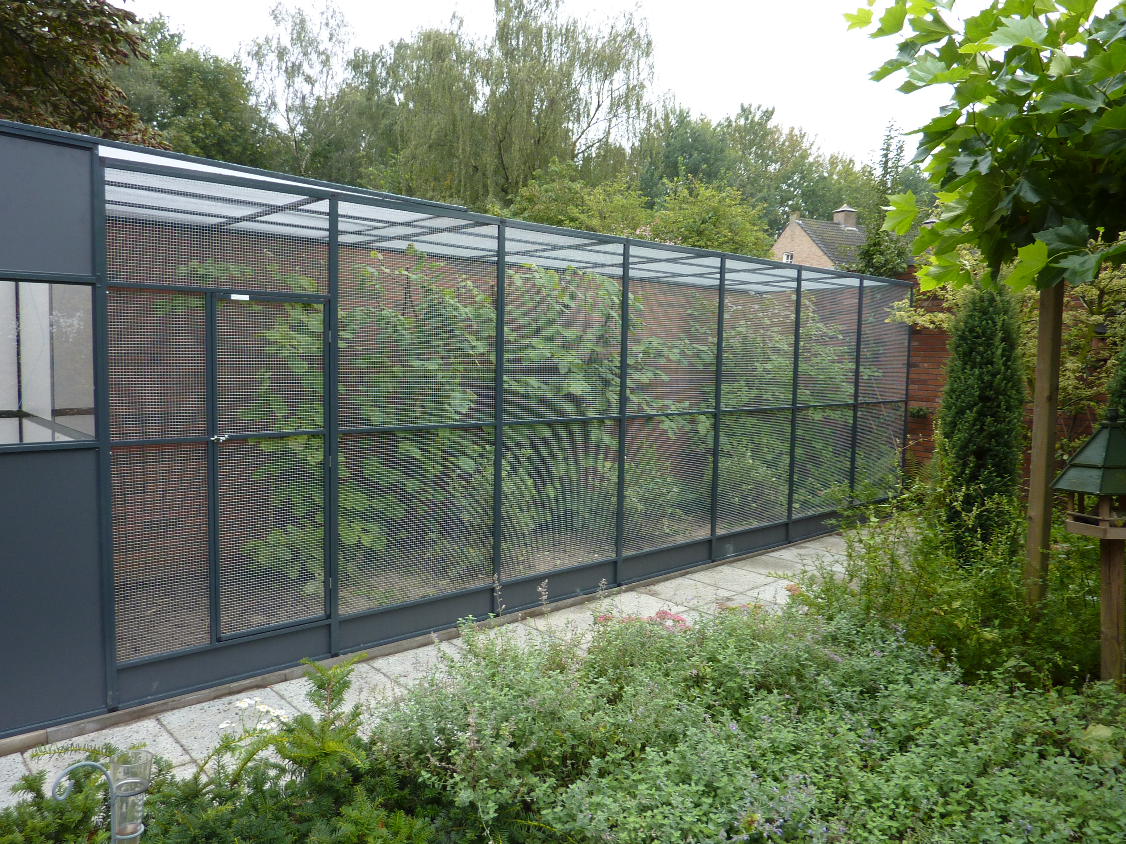 Geen enkele tuin of situatie is hetzelfde. Daarom wordt elke volière volledig op maat gemaakt, van het formaat en de vorm tot aan de keuze van materialen en afwerking. Denk aan aluminium of verzinkt staal met duurzaam gaas, een stevige deur en eventueel een schuifluik of tussenschot. De volière kan vrijstaand in de tuin geplaatst worden of worden aangebouwd aan een schuur, muur of veranda. Zo ontstaat een harmonieuze combinatie van functionaliteit en uitstraling.