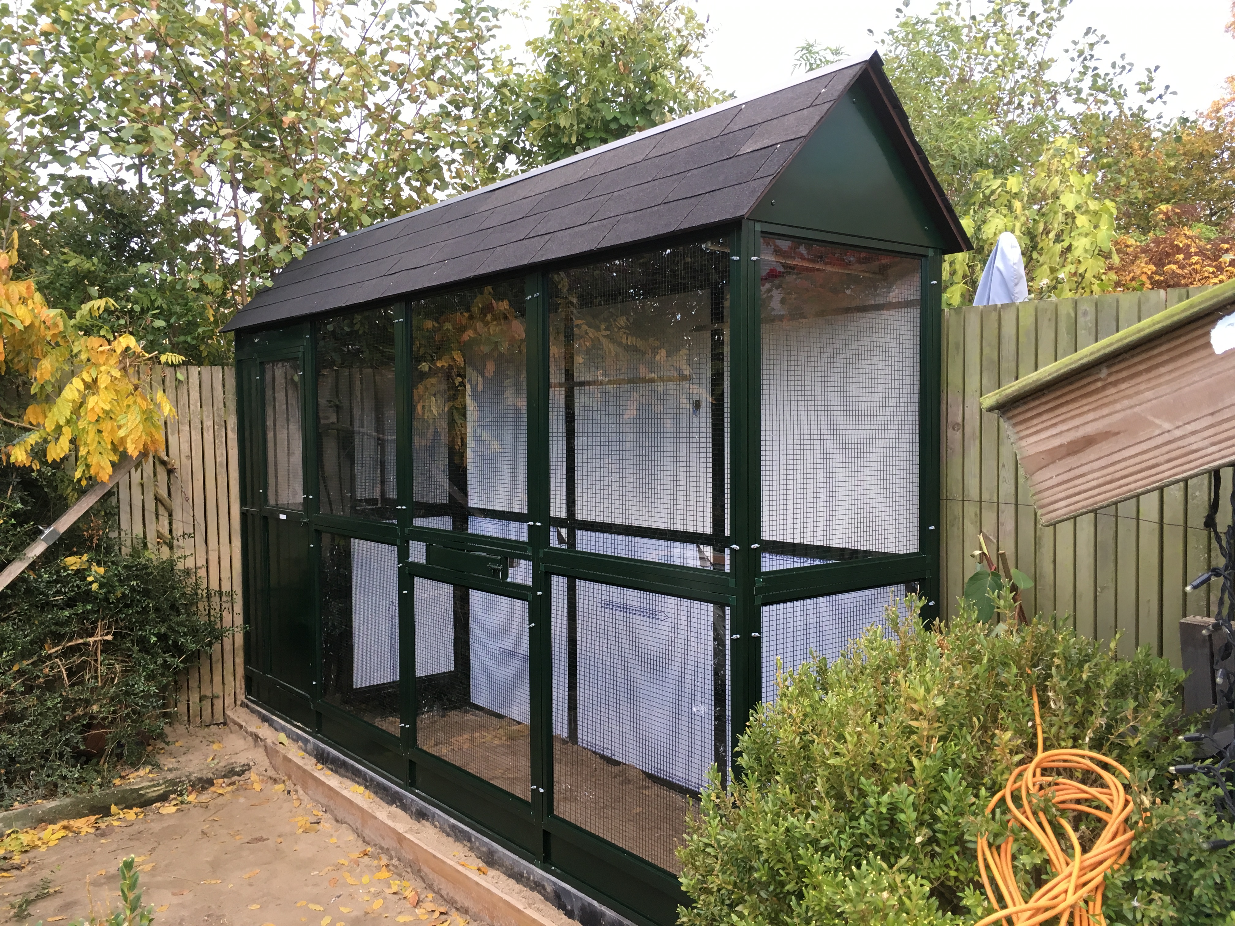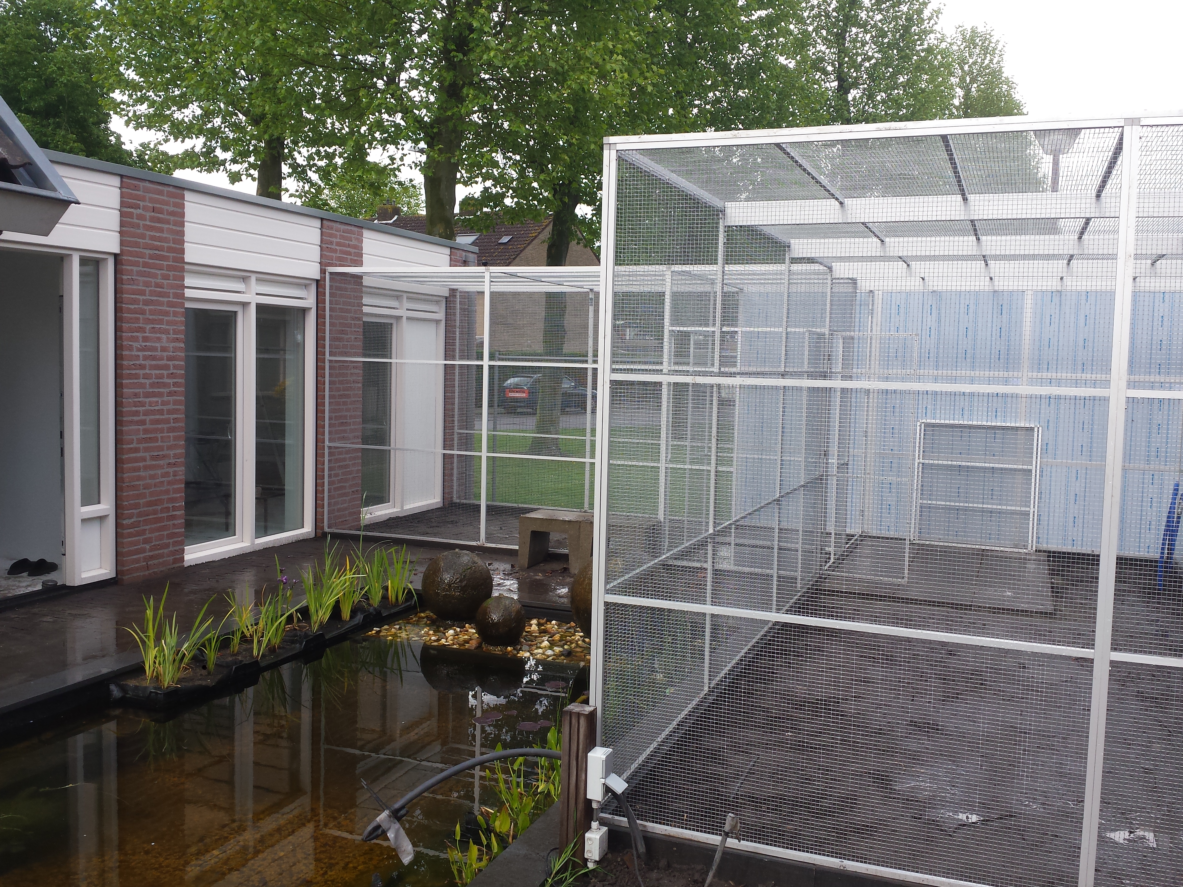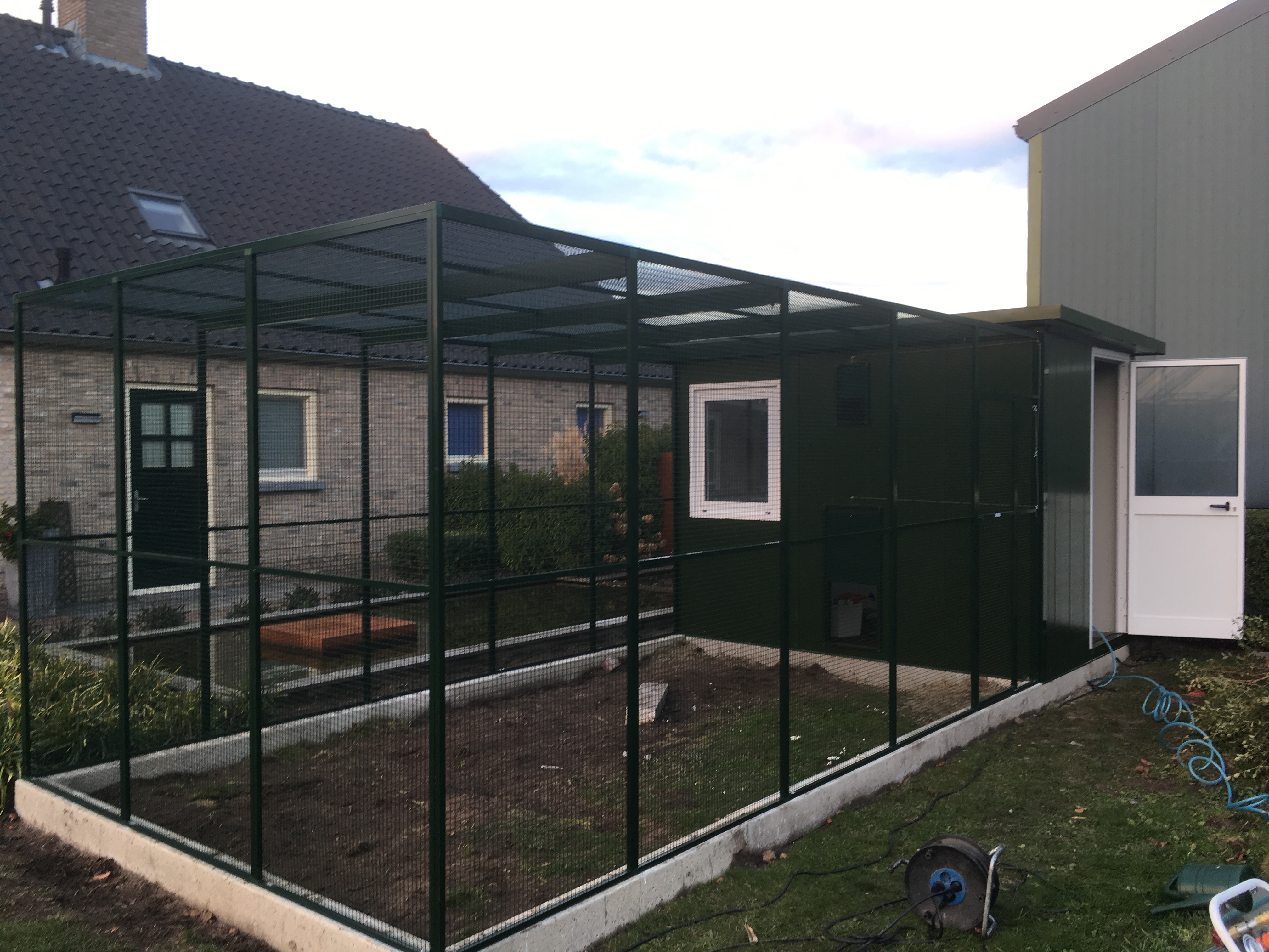 Geen enkele tuin of situatie is hetzelfde. Daarom wordt elke volière volledig op maat gemaakt, van het formaat en de vorm tot aan de keuze van materialen en afwerking. Denk aan aluminium of verzinkt staal met duurzaam gaas, een stevige deur en eventueel een schuifluik of tussenschot. De volière kan vrijstaand in de tuin geplaatst worden of worden aangebouwd aan een schuur, muur of veranda. Zo ontstaat een harmonieuze combinatie van functionaliteit en uitstraling.