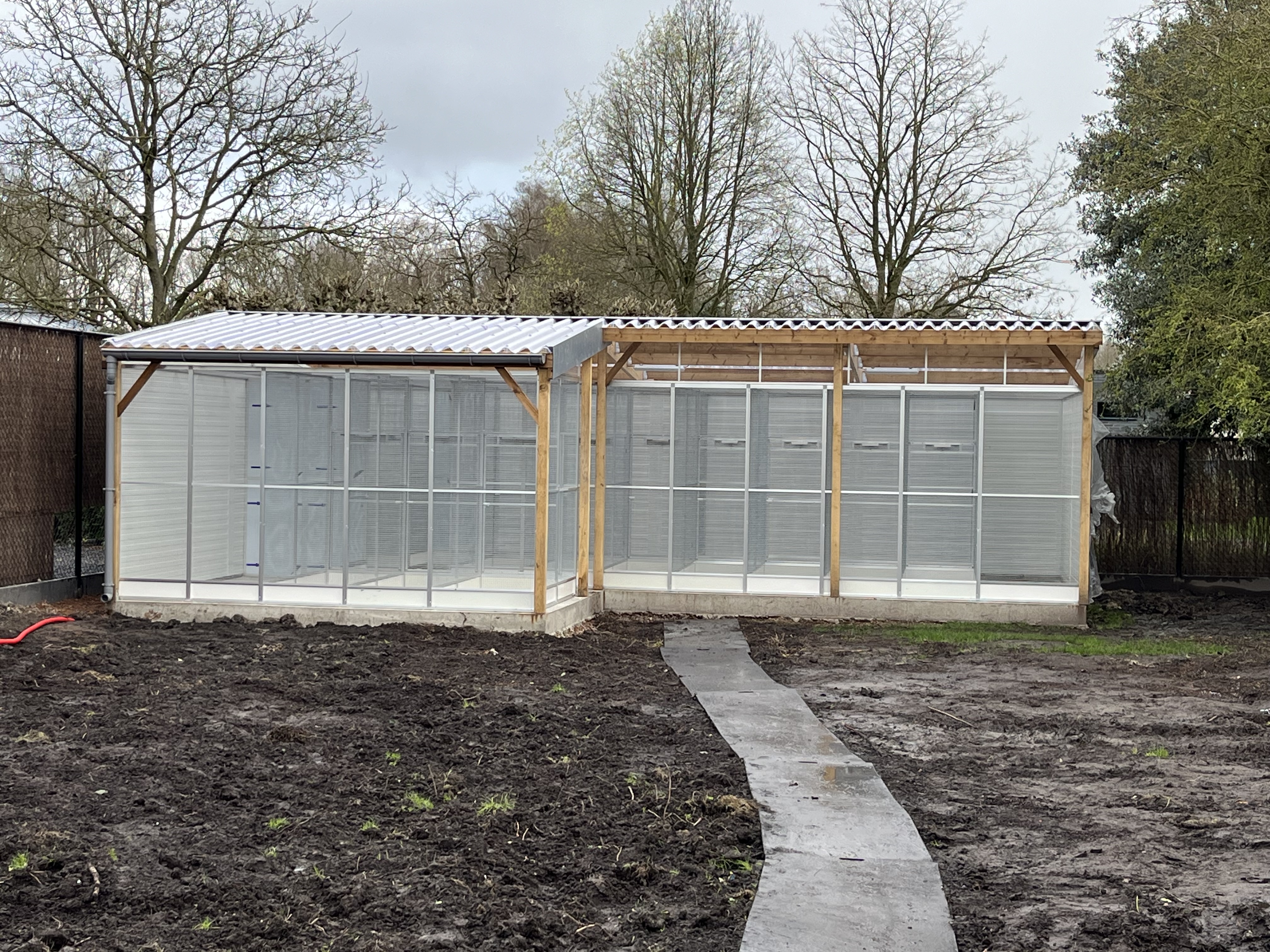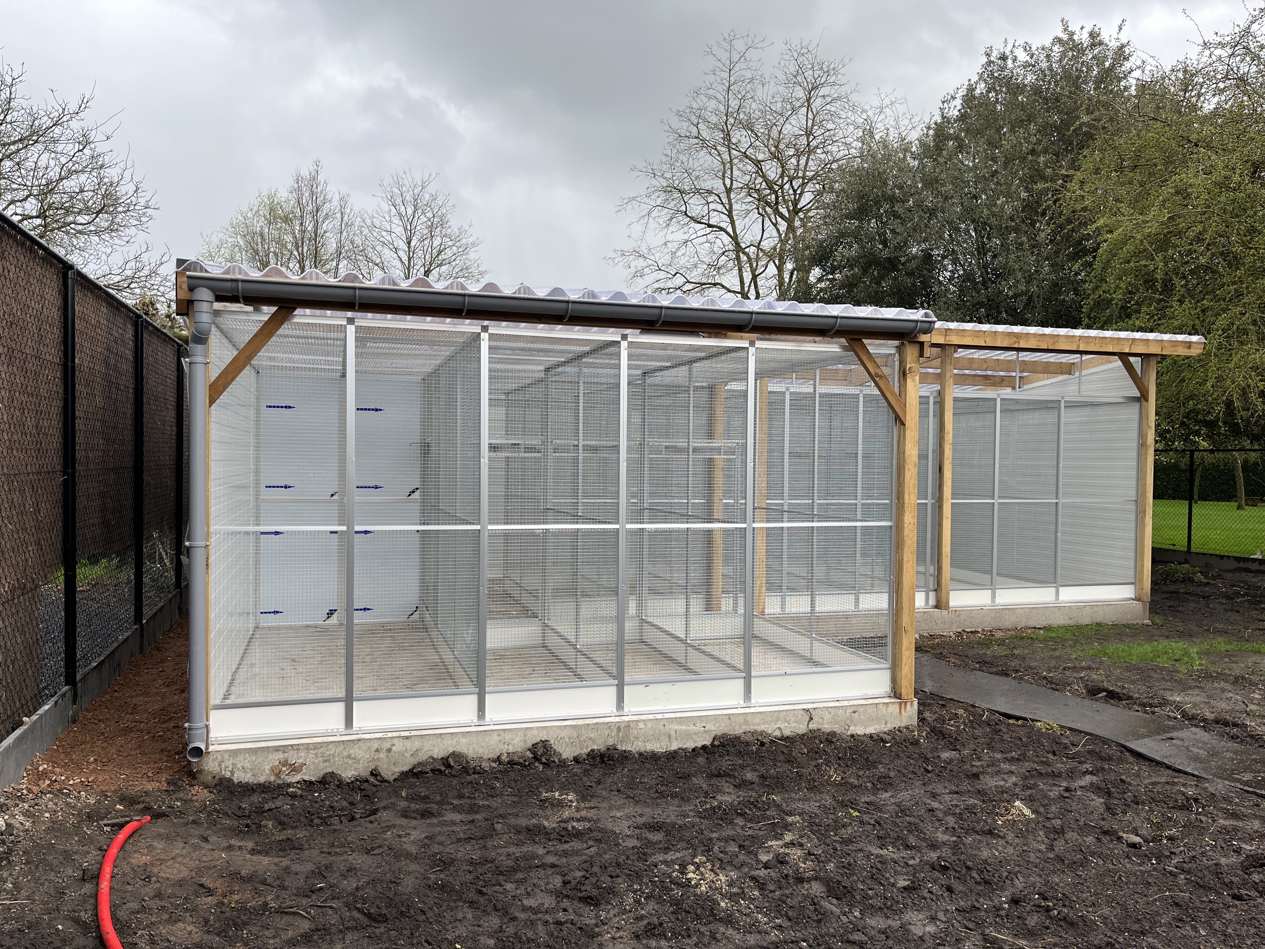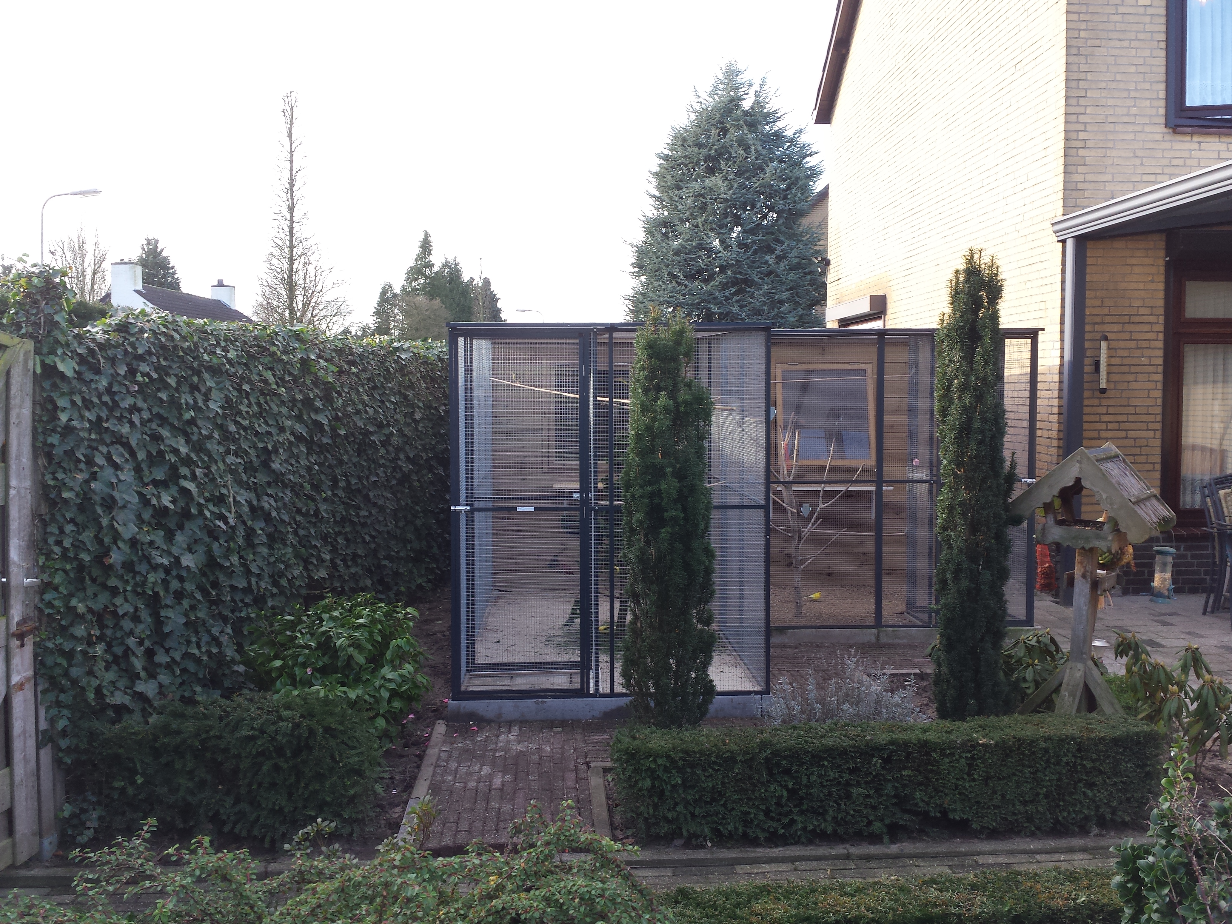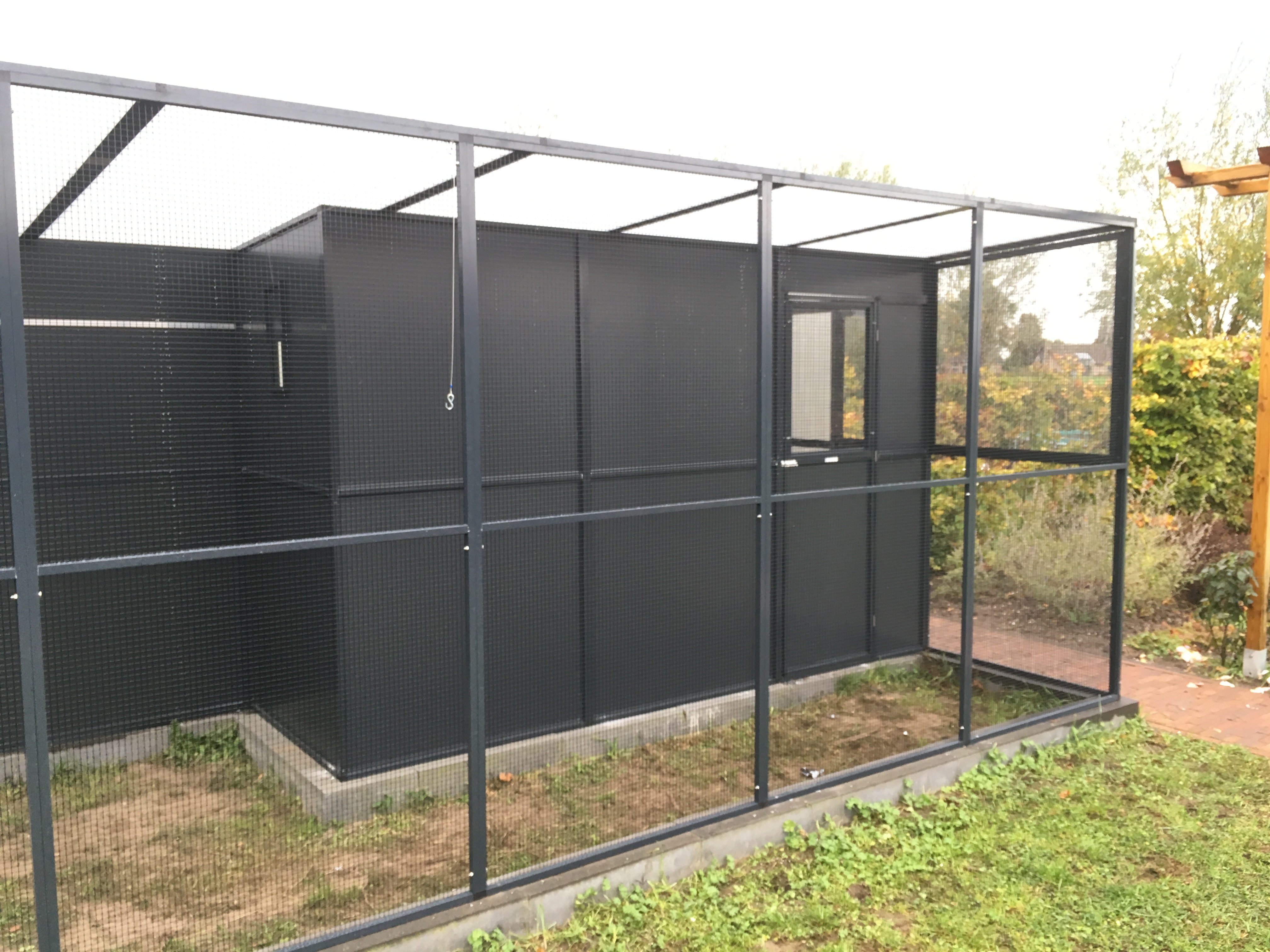 Een volière moet jarenlang meegaan, zonder dat onderhoud een last wordt. Daarom wordt gewerkt met materialen die bestand zijn tegen weer en wind, en die bovendien veilig zijn voor de vogels. Geen scherpe randen of roestgevoelige delen, maar een solide constructie met oog voor detail. Het resultaat is een nette, verzorgde volière die past bij de stijl van je tuin en die jarenlang plezier biedt — aan jou én je vogels.